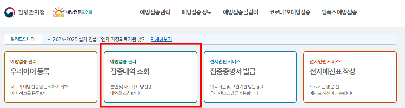 예방접종 도우미 사이트 이용